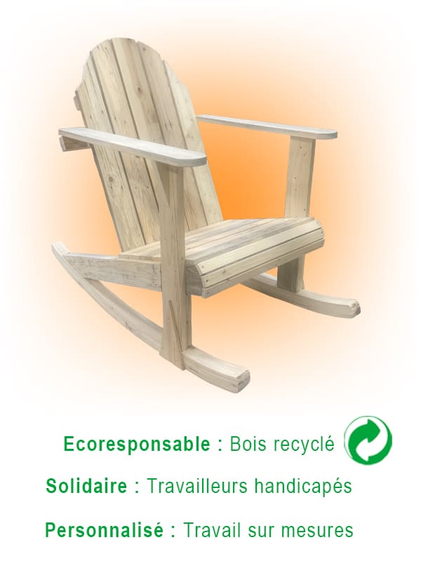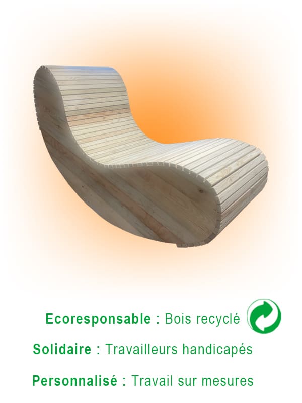 Transat en bois naturel recyclé, fabriqué par des travailleurs handicapés.