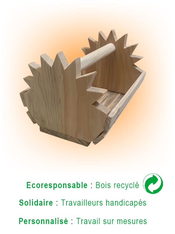 Petit panier à oeufs déco en bois naturel recyclé, fabriqué par des travailleurs handicapés.