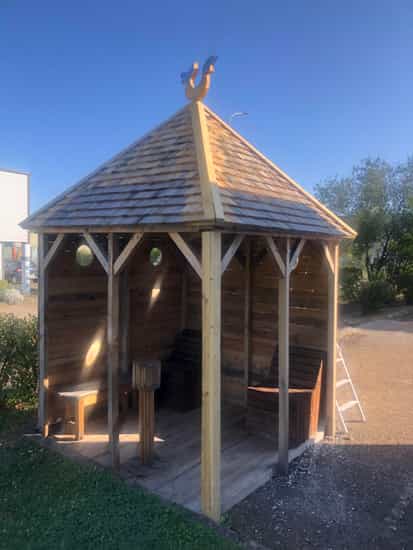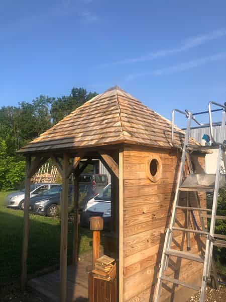 La petite cabane dans le jardin de l'ESAT fabriqué par nos menuisiers.